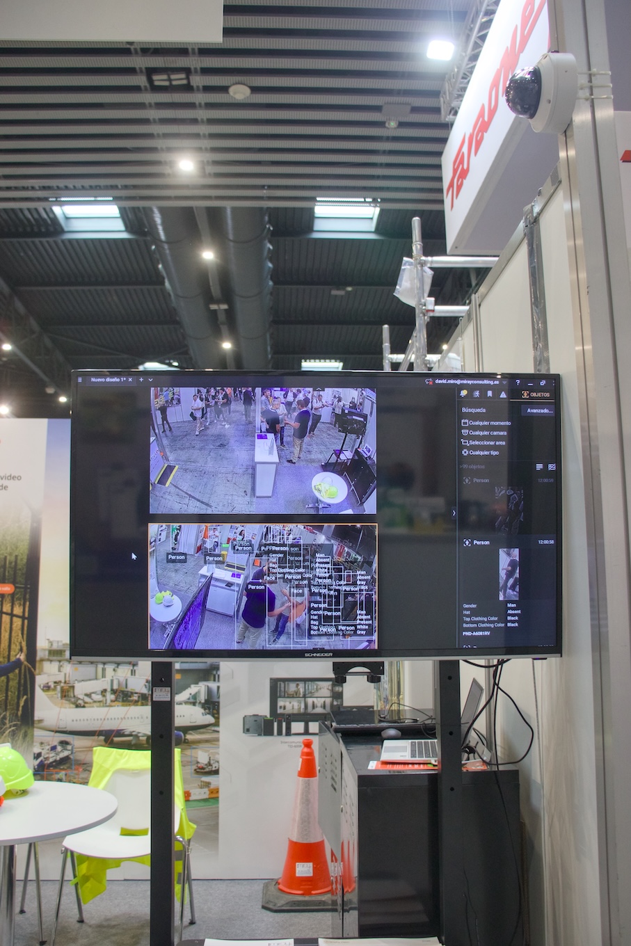 Esta capacidad de categorización detallada no solo sirve para el ámbito de la seguridad laboral (por ejemplo, para identificar personal autorizado por el uniforme), sino que también tiene aplicaciones directas en la optimización de procesos logísticos y de retail, donde la analítica de la afluencia y el comportamiento es vital. El éxito de esta demo radicó en la fiabilidad inquebrantable del sistema, incluso en las condiciones dinámicas y caóticas de una feria.